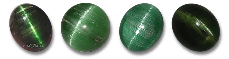 Турмалины кошачьего глаза - это результат параллельных волокнистых или игольчатых включений внутри драгоценного камня, которые препятствуют прохождению света через кристалл, рассеивают его и отражают обратно в глаз в виде тонкой линии. Это создает вид, похожий на кошачий глаз. Это может происходить во многих цветах, но особенно часто бывает в розовых и зеленых оттенках.