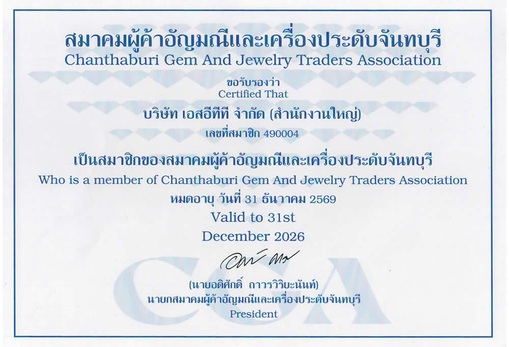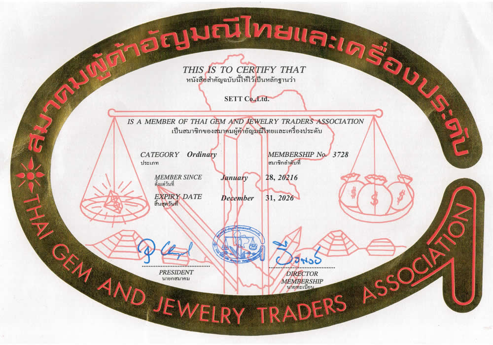 Наша компания (SETT Company Ltd.) GemSelect расположена в самом сердце города драгоценных камней Чантабури. Естественно, мы являемся членом CGA и представляем торговлю природными драгоценными камнями Чантабури.