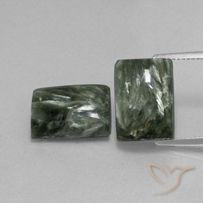Это 15.52-каратные натуральные Средний зеленый Серафинит, 2 шт. Огранка Багет формы, точные размеры 13.95 x 9.94 x 5.62 mm. Эти россыпи Серафинит были добыты в Россия, их чистота - Opaque. Эти натуральные Серафинит не подвергались обработке.